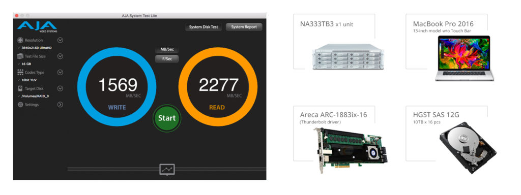 Designed 3U 16-bay storage chassis with support of sixteen hot-swappable drive trays. As each tray attached with 10TB HDD, total usable storage will come to 160 TB capacity. Additionally, through enclosure’s lightning-fast Thunderbolt™ 3 interface, the ultra large archiving storage is ensured to have higher data transfer bandwidth of up to 2750 MB/s.