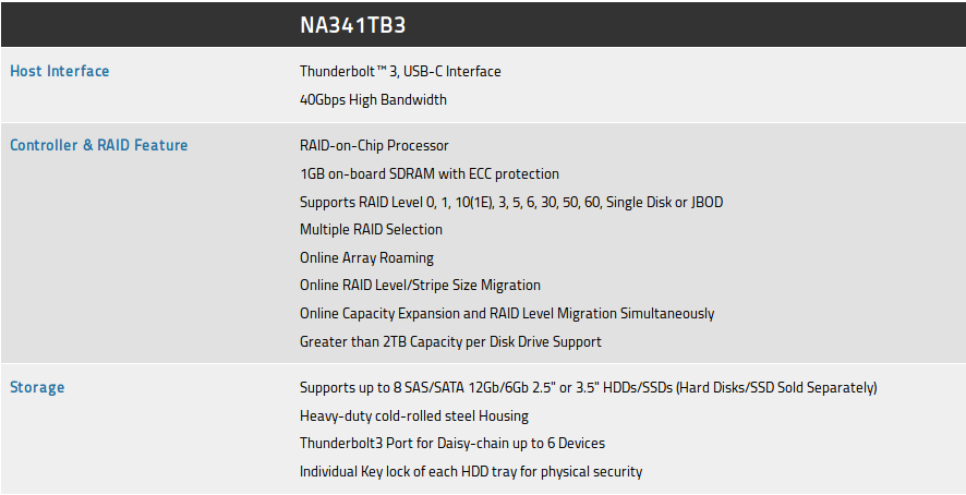 Through the utilizing and implementing of Netstor NA341TB3 19” rackmount storage to your system, you are rest assured your data stored on the unit are given the finest data protection with the highest data transfer speed to the thunderbolt3 host computer or workstation. What’s more, the storage unit is designed to be able to be aligned with the 19-inch rack cabinet effortlessly as the setup of the storage is very simple and straightforward via the easy connection of Thunderbolt™ 3 between host and enclosure.
