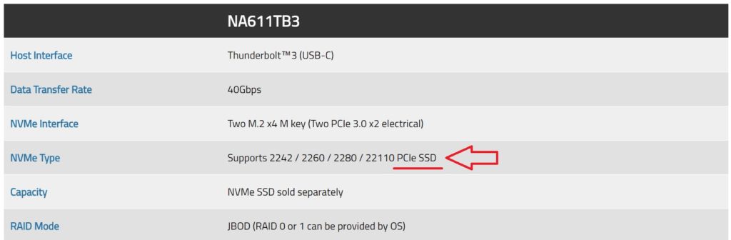 The NA611TB3 can be equipped with two M.2 PCIe NVMe flash storage modules with each module having PCIe 3.0 x2 lanes up to 16Gbps throughput. Moreover, the dual M.2 modules can further choose to be configured for software array as RAID 0 in favor of performance or RAID 1 in support of security.