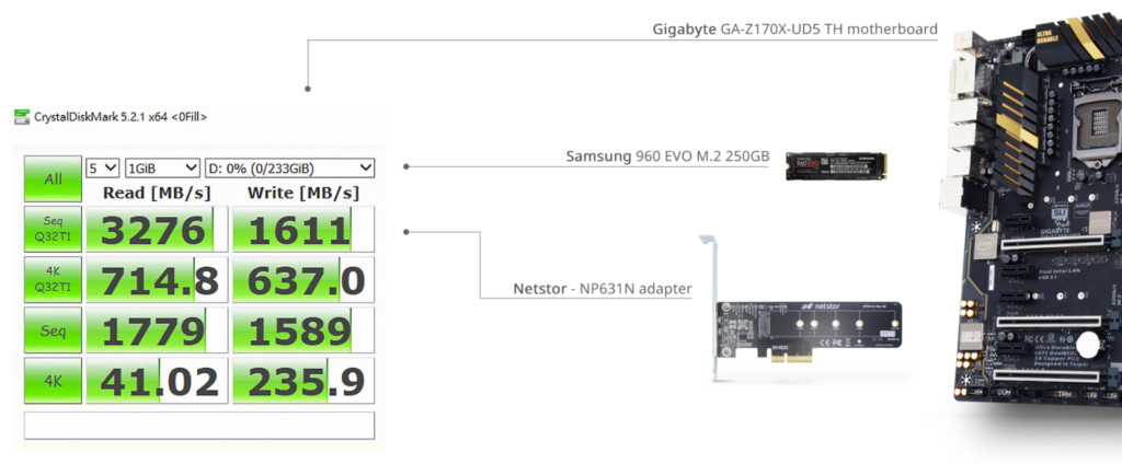 With all the present-day M.2 NVMe PCIe SSD attached to NP631N adapter to be installed on PC motherboard, the performance is just as fast as sufficient for your everyday work.