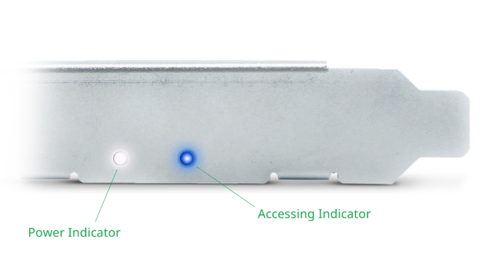 Thoughtfully designed with power and activity bracket-side LED indicators to let users always know the status of M.2 adapter and M.2 PCIe NVMe SSD without any difficulty.